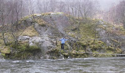 Somewhere in between the long procession of Atlantic low pressure systems that swept in relentlessly during the week, we managed a short walk into upper Glen Nevis to the thundering Steall waterfall. The Water of Nevis was in full spate and the waterfall itself looked even more impressive than usual. The challenge of the 3-wire bridge, however, was no match for our intrepid travellers and its traverse allowed for an up close and personal inspection of the thundering base of one of Scotland’s most impressive waterfalls.