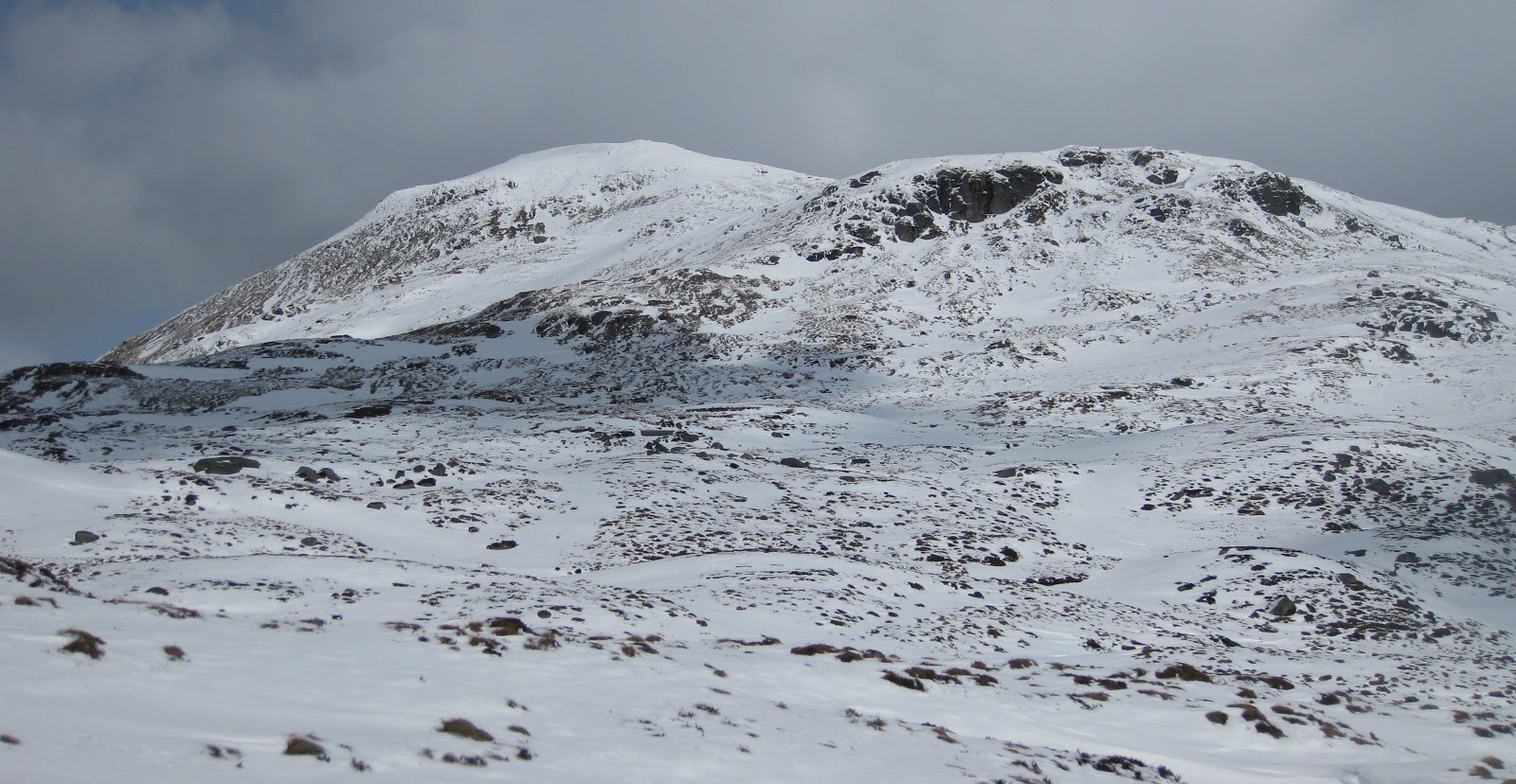 patchy until we reached the grassy domed summit of Mullach nan Coirean (939m; summit of the corries).